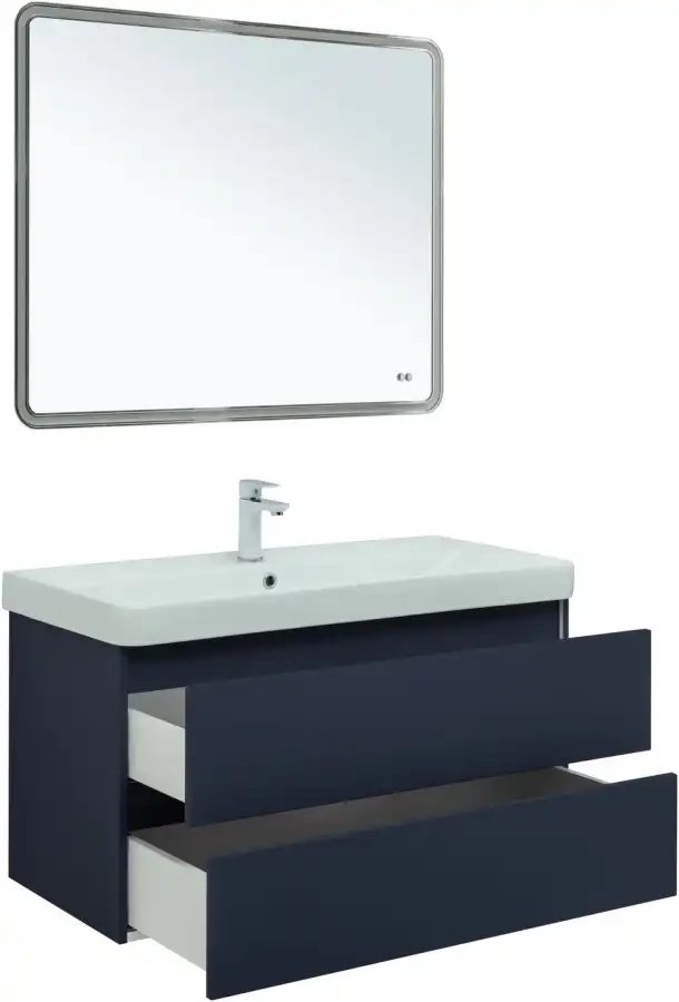 Тумба под раковину Aquanet Вега 2.0 100 см, подвесная, цвет Синий, 337945. Раковина приобретается отдельно.