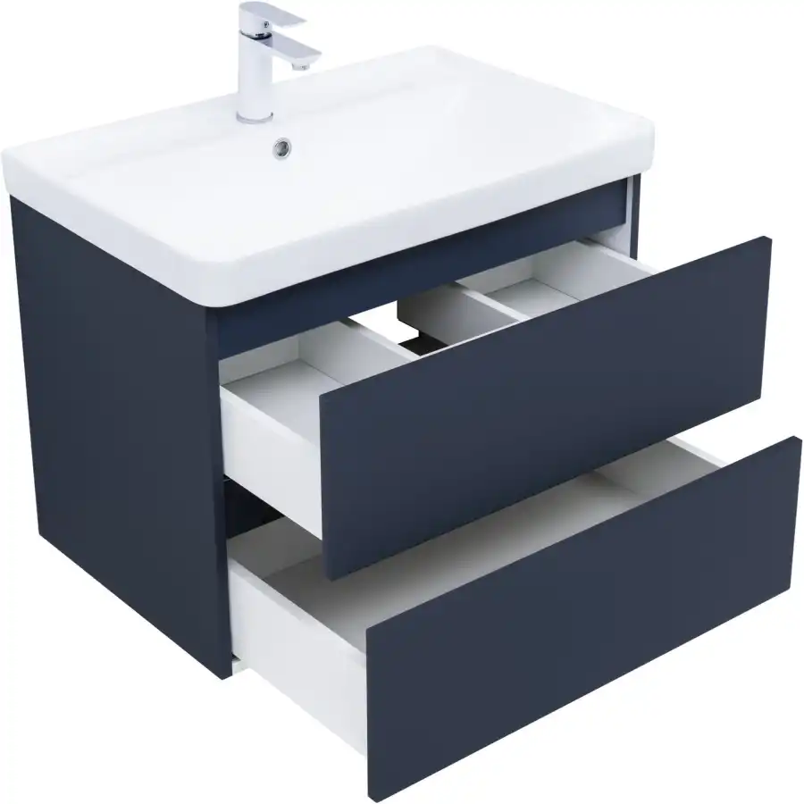 Тумба под раковину Aquanet Вега 2.0 70 см, подвесная, цвет Синий, 337948. Раковина приобретается отдельно.