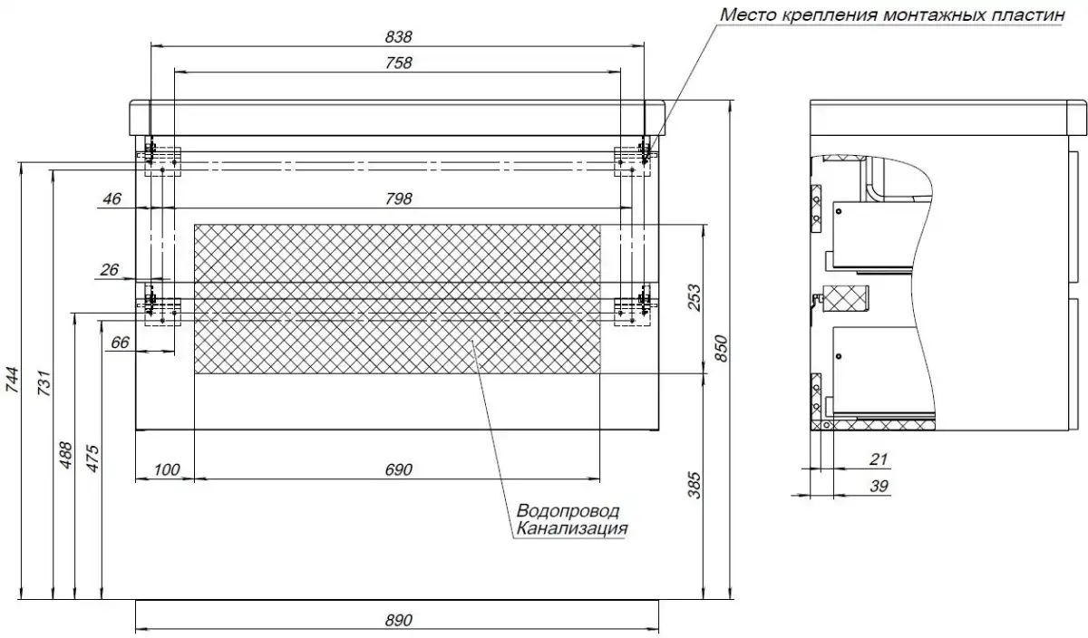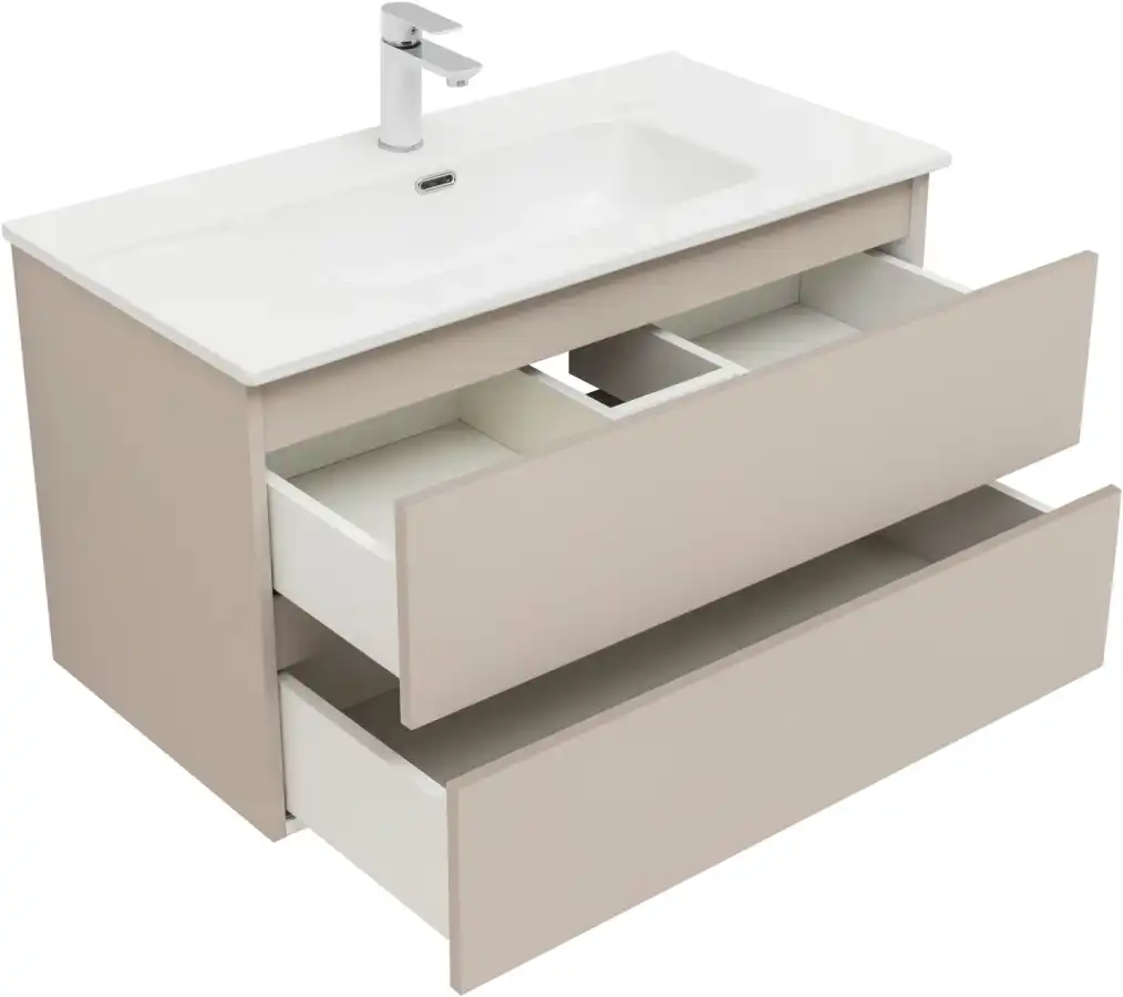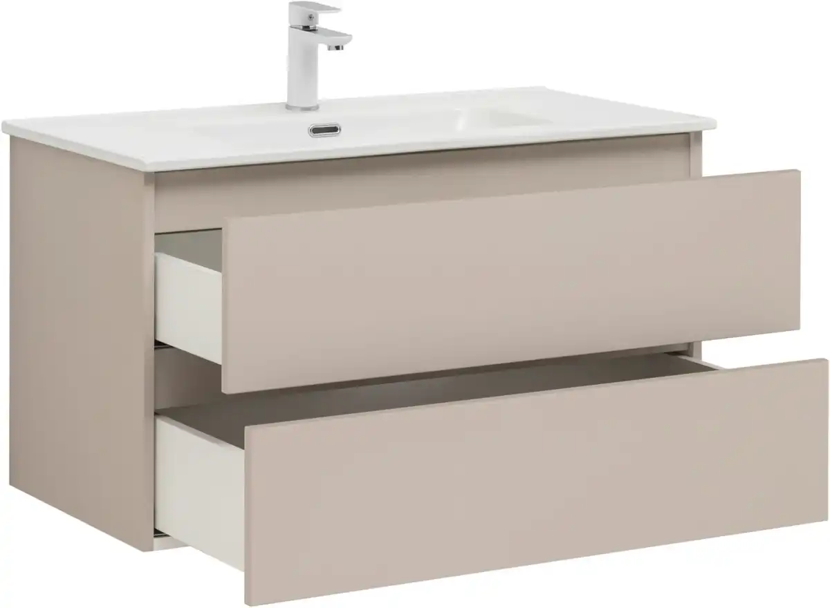 Тумба под раковину Aquanet Вега 2.0 90 см, подвесная, цвет Бежевый, 337944. Раковина приобретается отдельно.