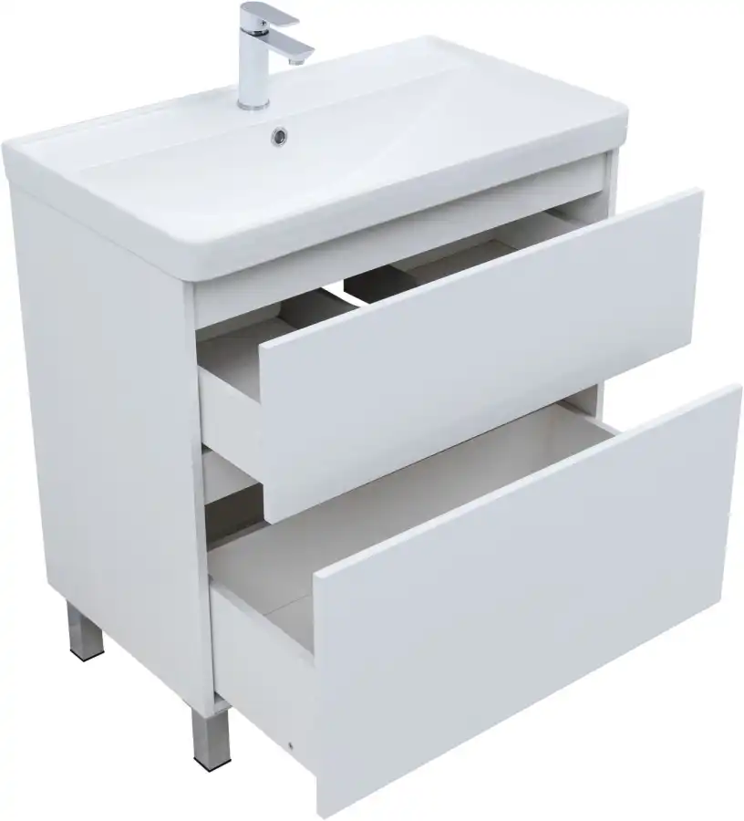 Тумба под раковину Aquanet Вега 80 напольная в отделке "белый глянец" – это воплощение элегантности и функциональности для современной ванной комнаты. Корпус и фасады, выполненные из влагостойкой ЛДСП с эмалевым покрытием, гарантируют долговечность и безупречный внешний вид, устойчивый к воздействию влаги. Глянцевая поверхность придает изделию изысканный блеск и легко очищается.