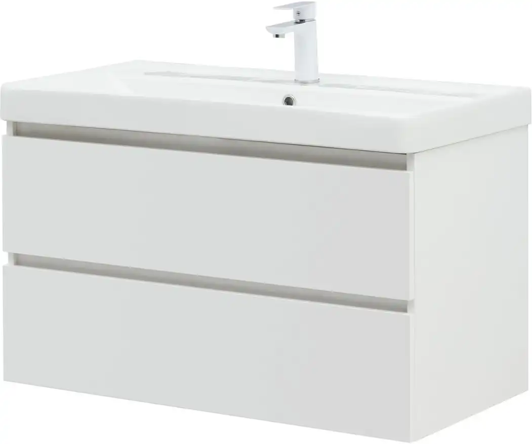 Тумба под раковину Aquanet Вега 90 см, подвесная, цвет Белый, 316683. Раковина приобретается отдельно.