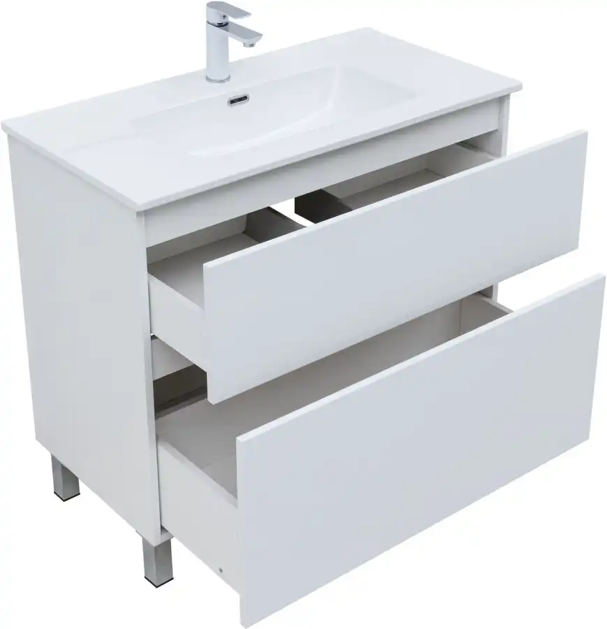 Тумба под раковину Aquanet Вега 90 напольная в отделке "белый глянец" – это воплощение элегантности и функциональности для современной ванной комнаты. Корпус и фасады, выполненные из влагостойкой ЛДСП с эмалевым покрытием, гарантируют долговечность и безупречный внешний вид, устойчивый к воздействию влаги. Глянцевая поверхность придает изделию изысканный блеск и легко очищается.