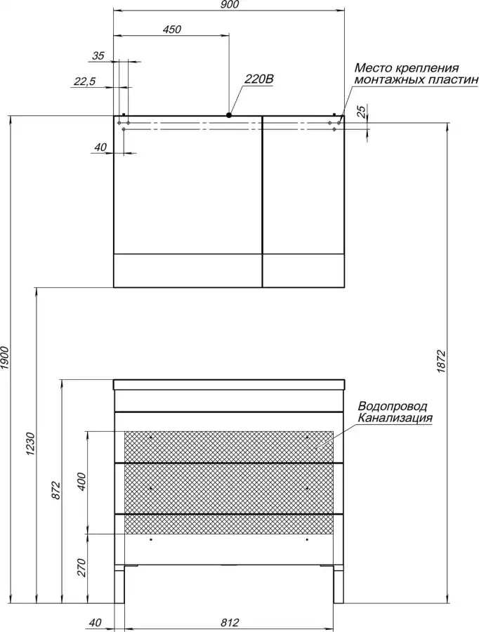Ширина мебели (см)90