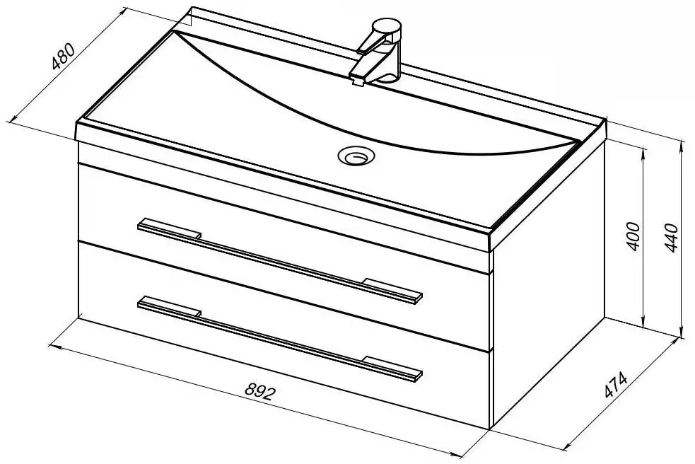 Тумба под раковину Aquanet Верона 90 белый (подвесная 2 ящика) 172335