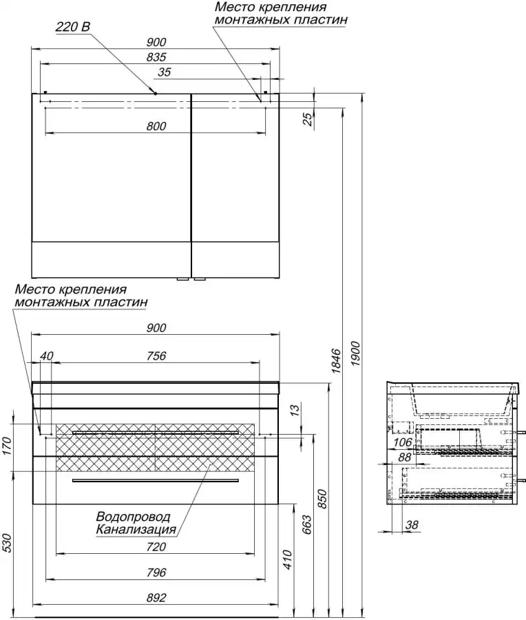 Ширина мебели (см)90