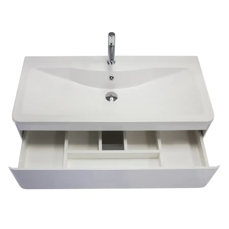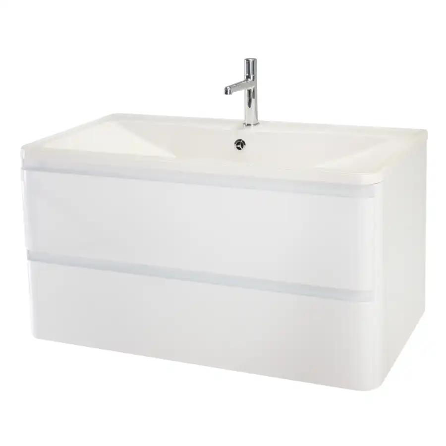 Дополнительная информация: база оснащена доводчиками скрытого монтажа с системой Soft close (плавного закрывания) - ;C врезными (фрезерованными) ручками в плоскости фасада; раковина сифоном не комплектуется
