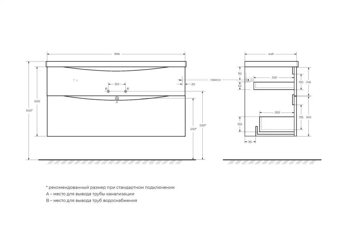 Направляющие с доводчиками от мирового лидера среди производителей фурнитуры Hettich (Германия). Увеличенная глубина нижнего ящика, большая вместимость по сравнению с базами стандартных размеров.