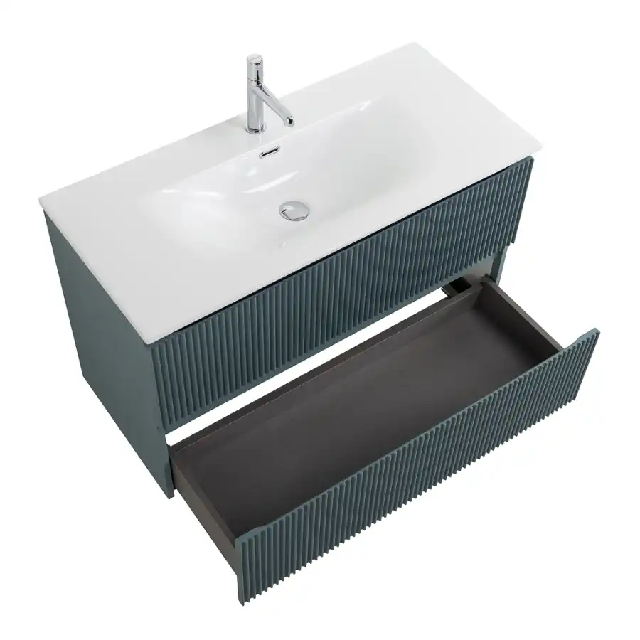 Главная изюминка коллекции – стильные плиссированные фасады, обогащающие интерьер текстурой, динамикой и сдержанной элегантностью, при этом легко сочетающиеся с разными материалами и стилями.