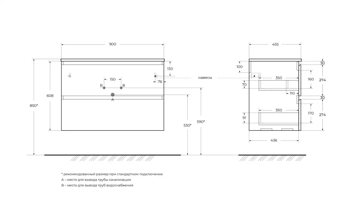 UNO – подвесные тумбы глубиной 455 мм и шириной от 600 до 1200 мм., с одним, двумя или четырьмя выкатными ящиками (1200 мм). Тумбы комплектуются керамическими раковинами с одной или двумя чашами (1200 мм).
