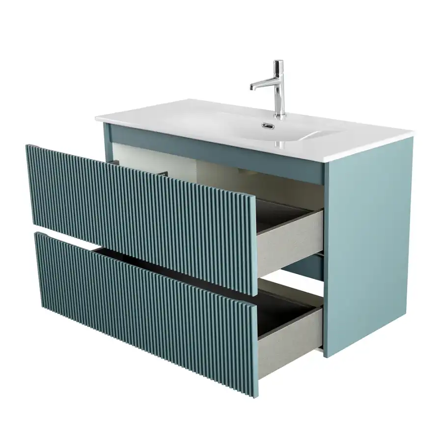 BelBagno UNO-MINI База под раковину подвесная с фрезерованными ручками по всей длине фасада с двумя выкатными ящиками, Голубой Матовый, 1000x395x608, UNO-MINI-1000-2C-SO-AO