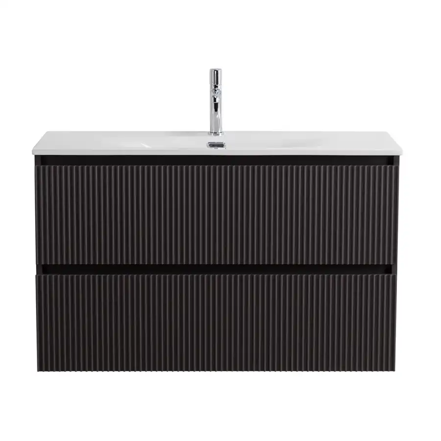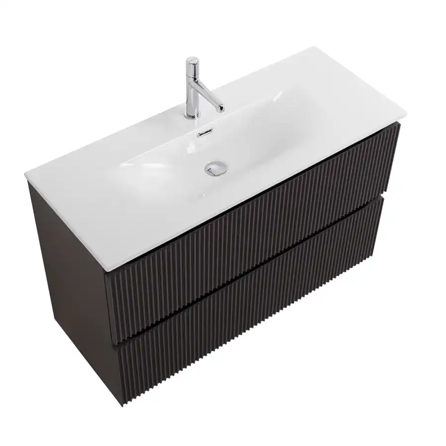 BelBagno UNO-MINI База под раковину подвесная с фрезерованными ручками по всей длине фасада с двумя выкатными ящиками, Темно-Серый Матовый, 1000x395x608, UNO-MINI-1000-2C-SO-GSO