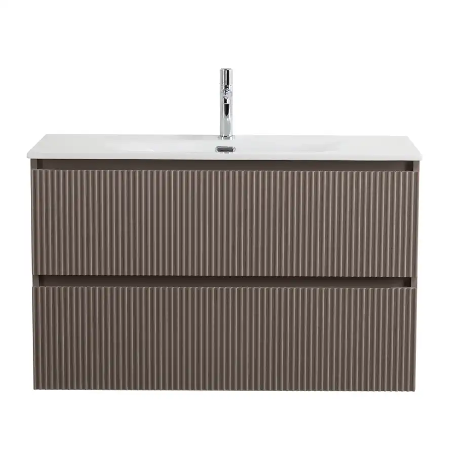 BelBagno UNO-MINI База под раковину подвесная с фрезерованными ручками по всей длине фасада с двумя выкатными ящиками, Бежевый матовый, 1000x395x608, UNO-MINI-1000-2C-SO-CO