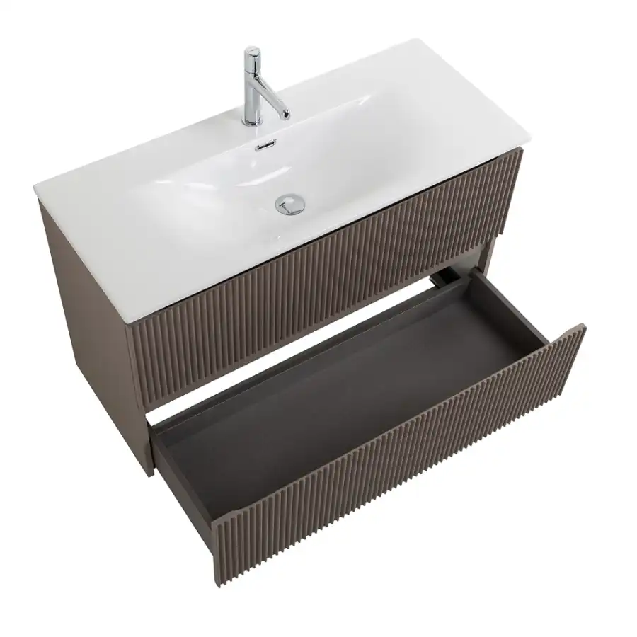 Главная изюминка коллекции – стильные плиссированные фасады, обогащающие интерьер текстурой, динамикой и сдержанной элегантностью, при этом легко сочетающиеся с разными материалами и стилями.