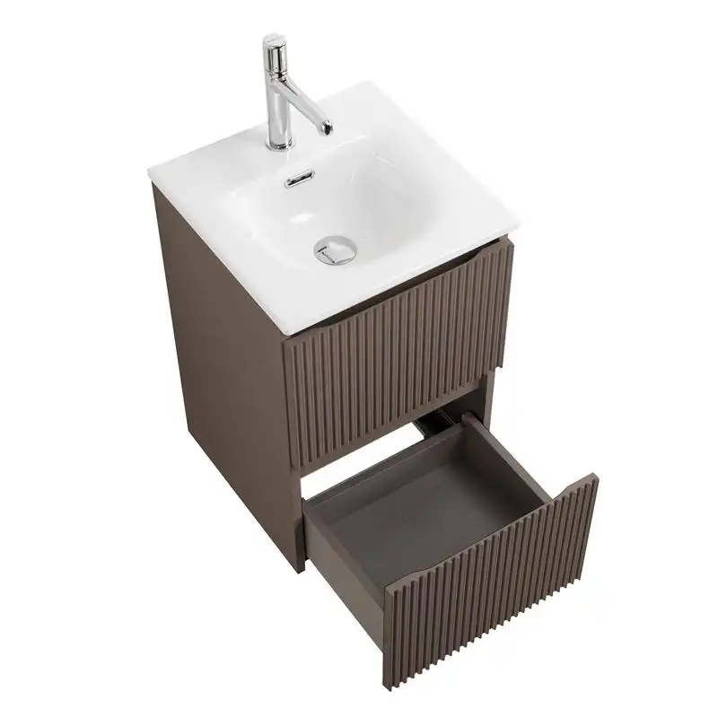 BelBagno UNO-MINI База под раковину подвесная с фрезерованными ручками по всей длине фасада с двумя выкатными ящиками, Бежевый матовый, 400x405x608, UNO-MINI-400-2C-SO-CO