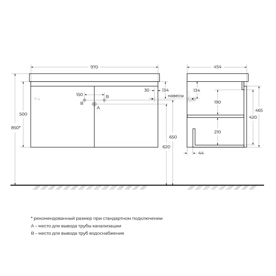 GIUBILEO База под раковину подвесная с двумя распашными дверцами, Bianco Lucido, 970x450x500, GIUBILEO-1000-2A-SC-BL