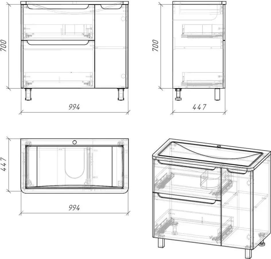 Тумба напольная Grossman "АДЕЛЬ-100 см" с 2-я ящиками, белая (ум. Aдель-100), 1010002.