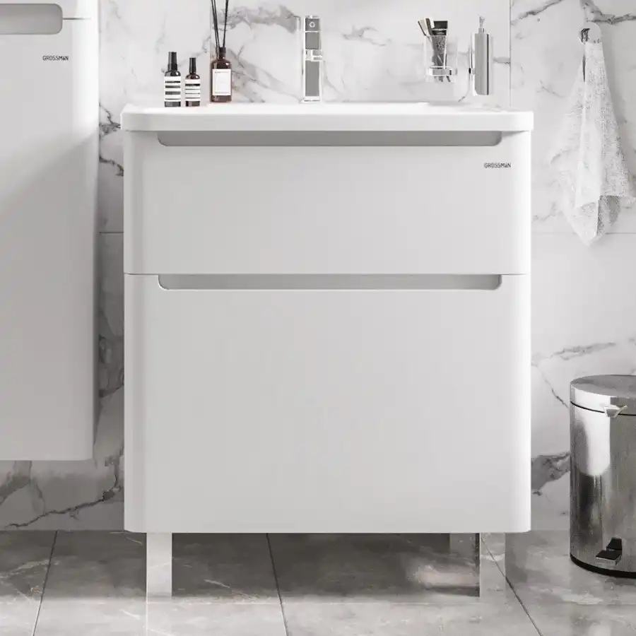 Тумба под раковину Grossman Адель 70 напольная, белая глянцевая (107005)