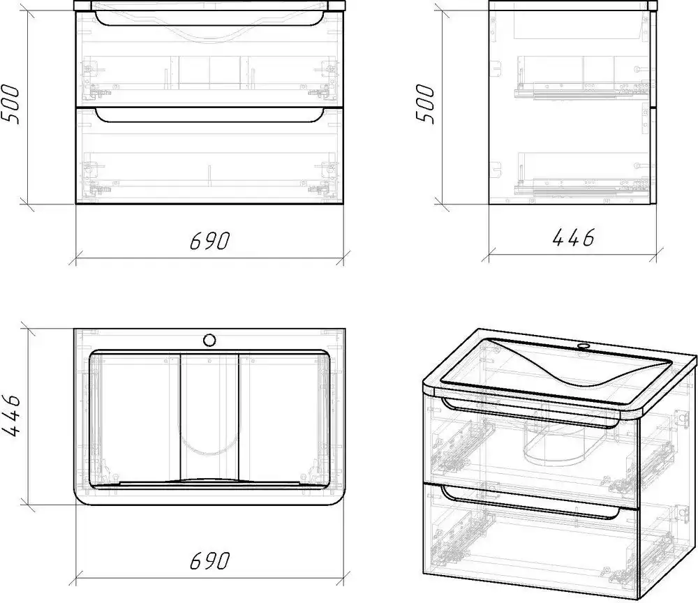 Тумба подвесная Grossman "АДЕЛЬ-70 см" с 2-я ящиками, белая (ум. Aдель-70), 107006.