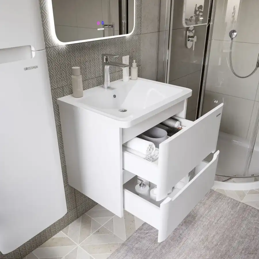 Тумба под раковину Grossman Адель-Норма 60 подвесная, белая глянцевая (106038)