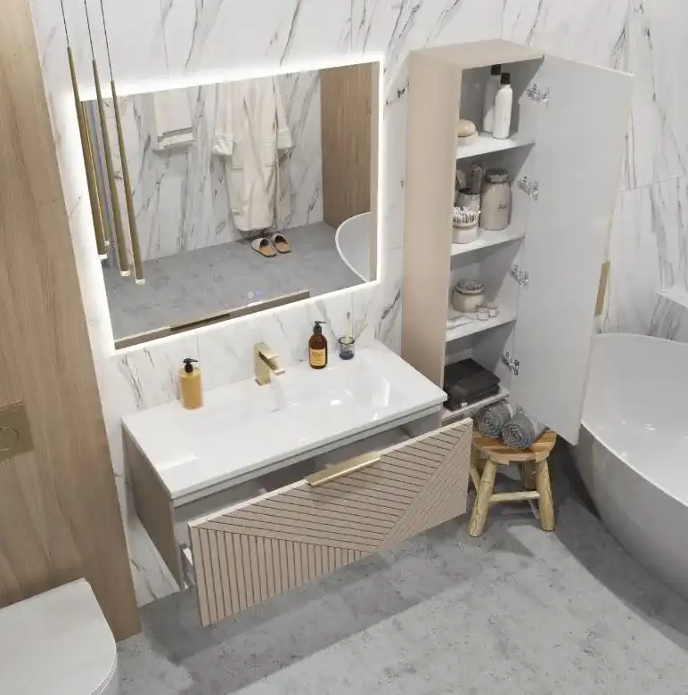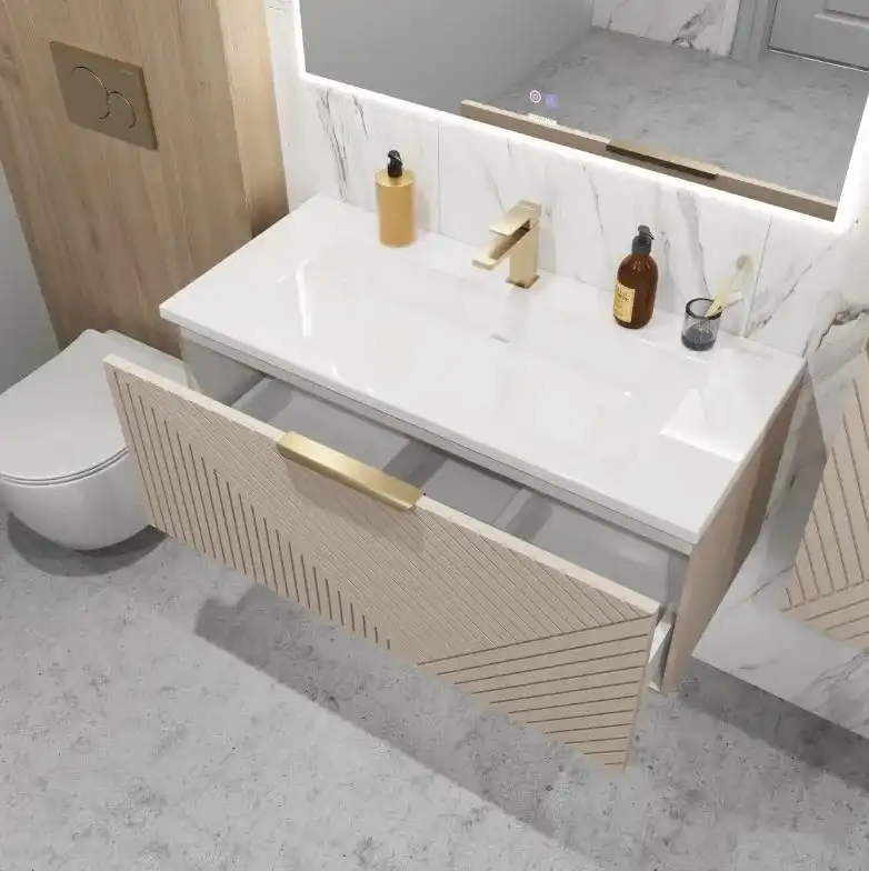 Тумба под раковину Grossman Блисс 100 подвесная, бежевый матовый (1010049)