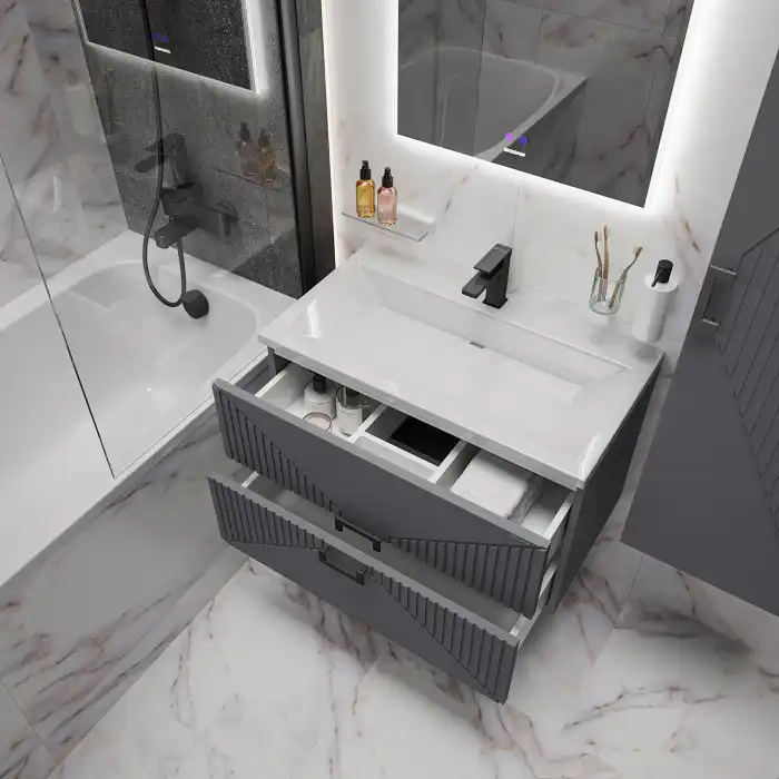 Тумба подвесная Grossman "ЛУКСОР-60 см" с 2-я ящиками, графит матовая (ум. Блисс-60 см.), 106056.