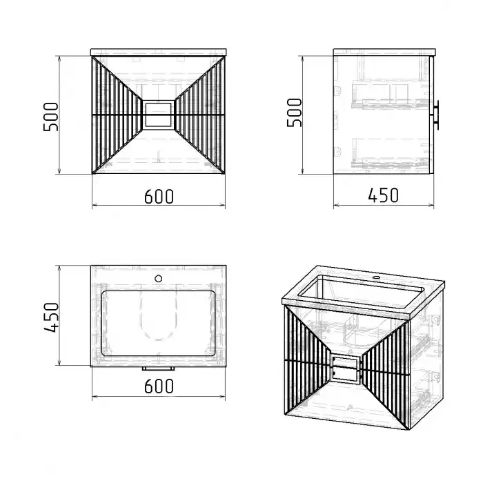 Тумба под раковину Grossman Луксор 60 подвесная, графит матовый (106056)