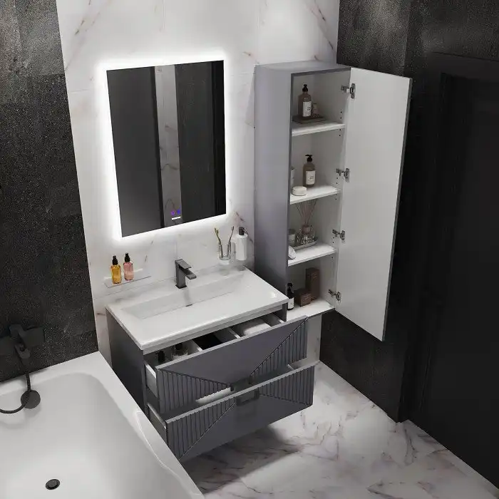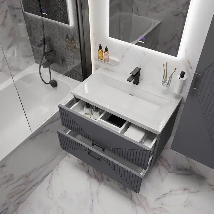 Тумба под раковину Grossman Луксор 80 подвесная, графит матовый (108049)