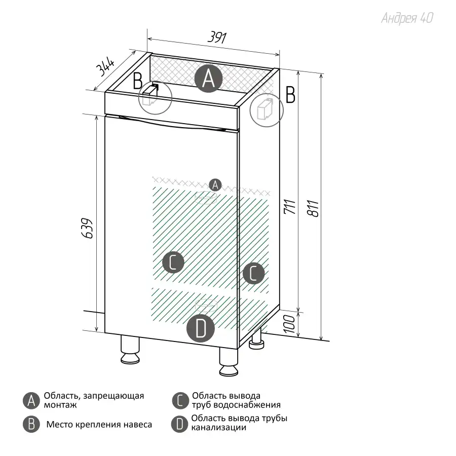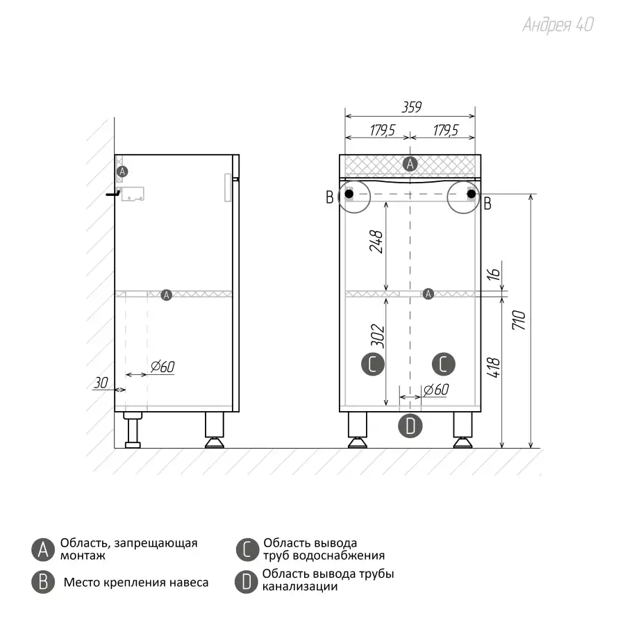 Тумба под раковину Grossman Виста 40 напольная, белая глянцевая (104062)