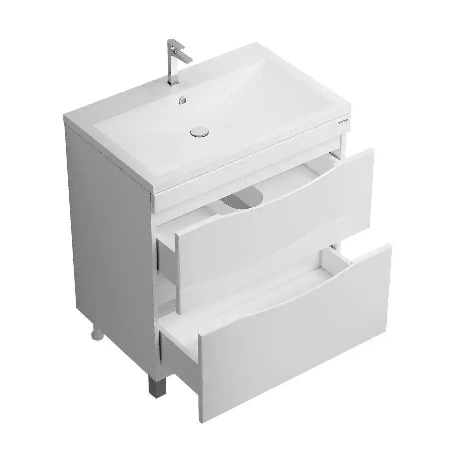 Тумба под раковину Grossman Виста 75 напольная, белая глянцевая (107565)