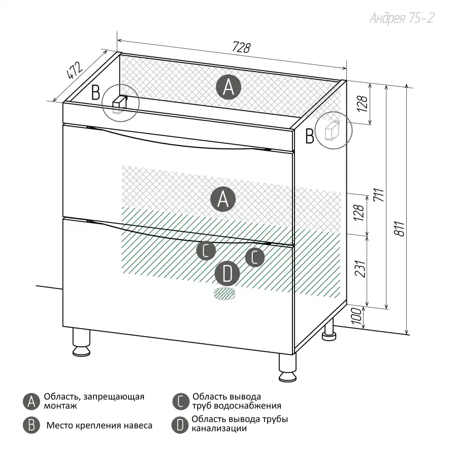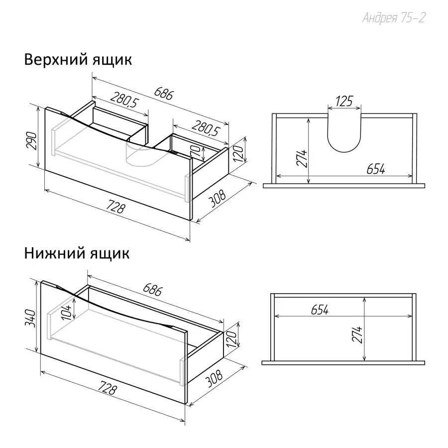 Тумба напольная Grossman "ВИСТА-75 см" с 2-я ящиками, белый глянец (ум. Alice-75), 107565.