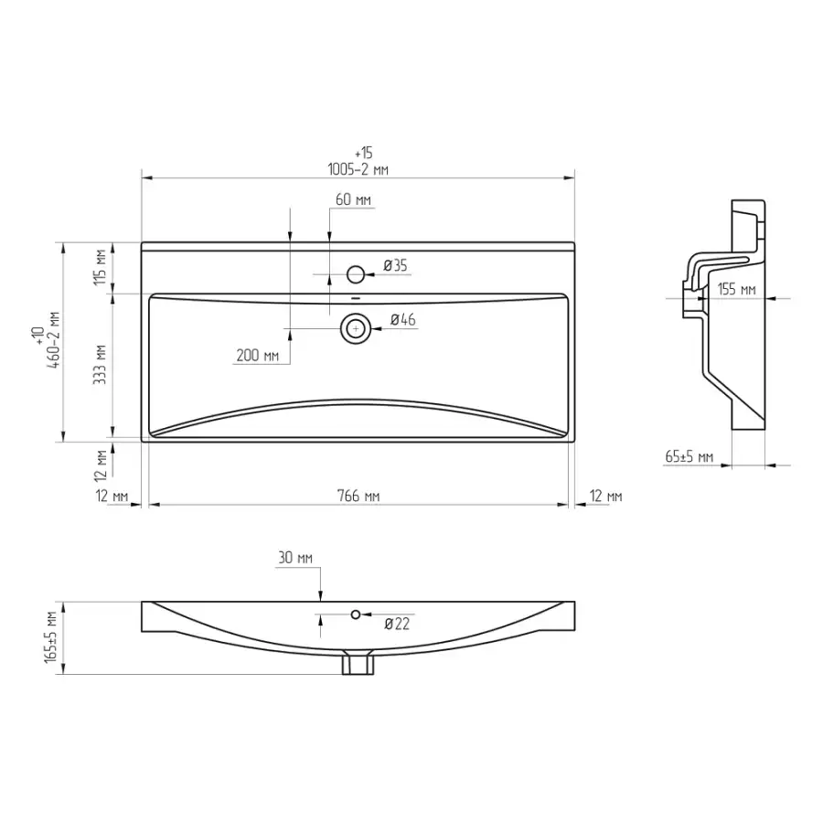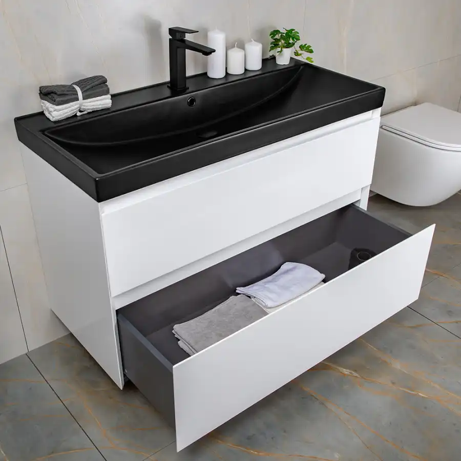 Тумба с раковиной AVS Гармония 100 белая, N821-07-1000WG-02-1010BM. Выдвижные ящики.