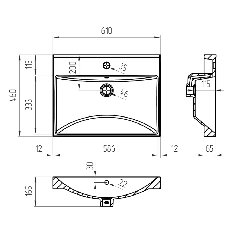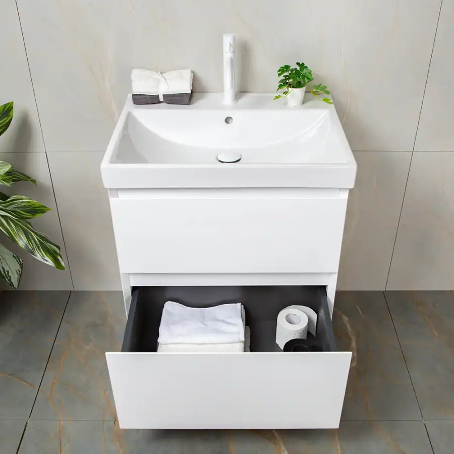 Тумба с раковиной AVS Гармония 60 белая, N821-07-600WG-02-610WG. Выдвижные ящики.