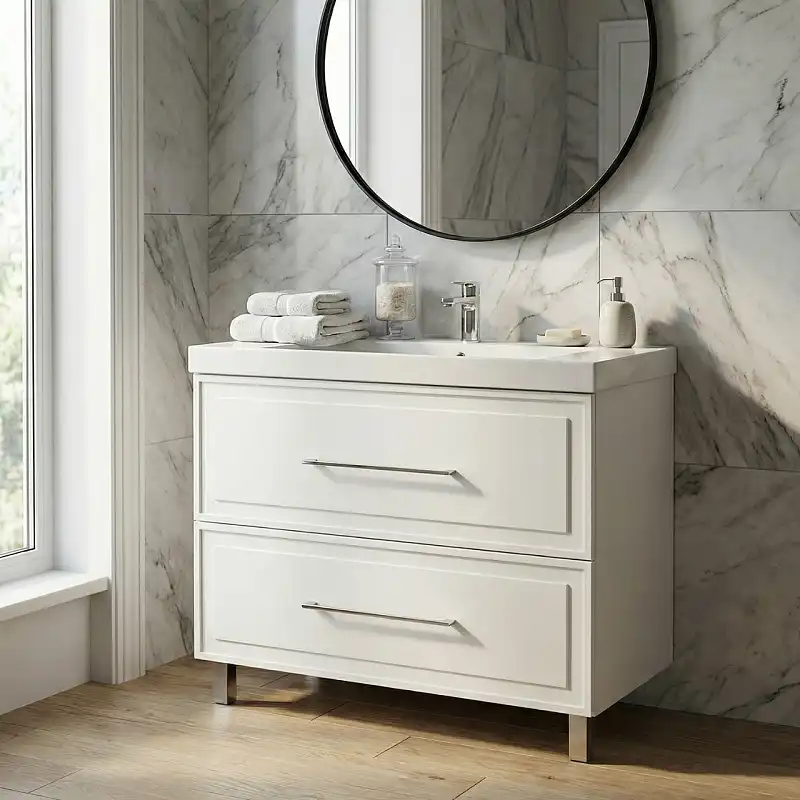 Тумба с раковиной Azario Belloni 100/2Н CS00098077, напольная, белая матовая