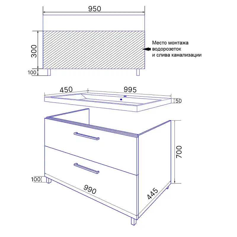 Комплект Azario Тумба Belloni 100/2Н CS00098077 995х450х850 напольная, с раковиной Астория 100, белый матовый