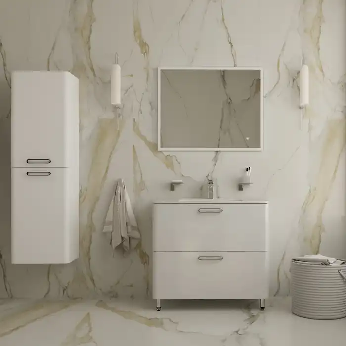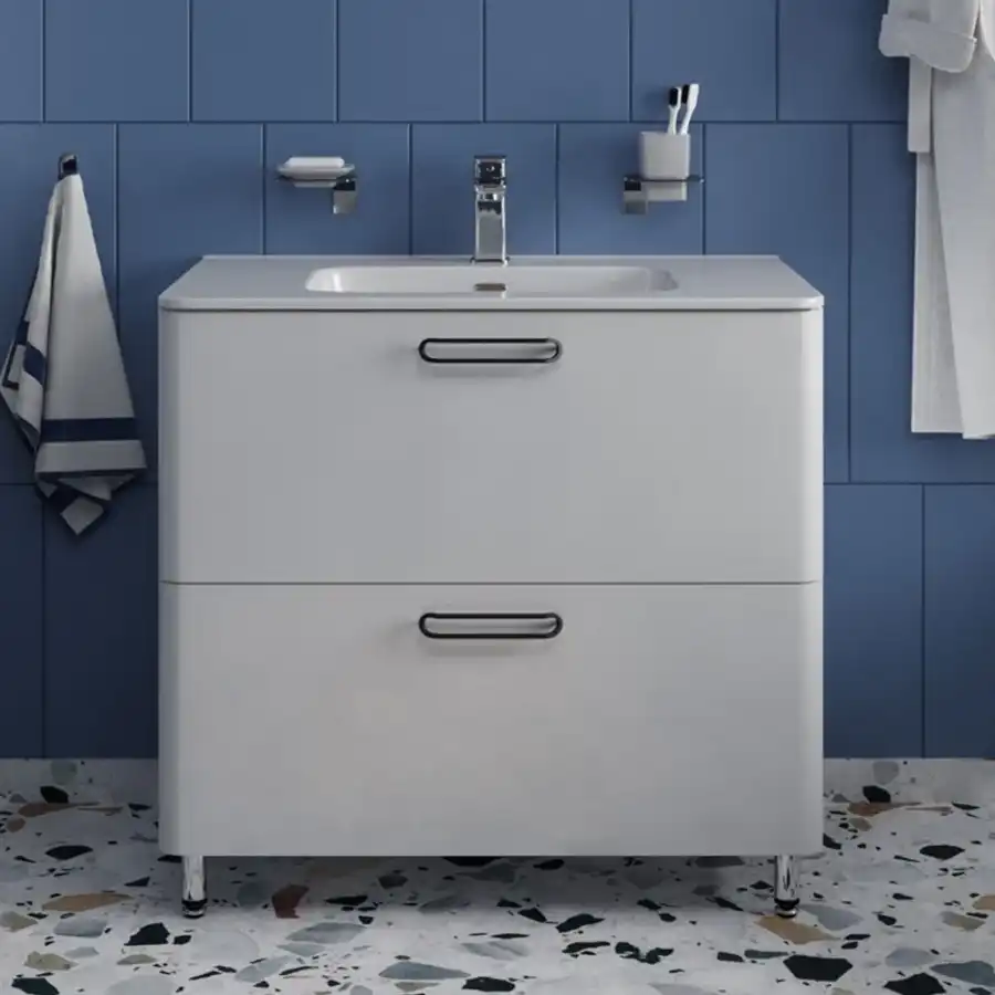 Тумба с плоским фарфоровым умывальником из популярной коллекции мебели Brick станет настоящим украшением для ванных комнат различной планировки в современном стиле. Сочетание белого глянца и сатиновых ручек делает коллекцию особенной. Напольная тумба Brick – невероятно удобное решение для тех, кому нужна модель с увеличенной вместительностью для хранения тяжелых предметов: больших пакетов со стиральным порошком и емкостей с бытовой химией. • Входящий в комплект умывальник (арт. 0108000i28) из качественного фарфора отличается высокой прочностью и простотой в уходе – он не задерживает загрязнения и неприятные запахи, надолго сохраняя первозданную белизну. • Два выдвижных ящика закрываются плавно и бесшумно благодаря высококачественным скрытым направляющим с доводчиками немецкого производства. • Фурнитура мебели IDDIS® рассчитана на 30 тысяч открываний, что составляет более 10 лет исправной работы. • Гарантия на мебель IDDIS® – 3 года. (с) Авторский текст, октябрь 2021 г.