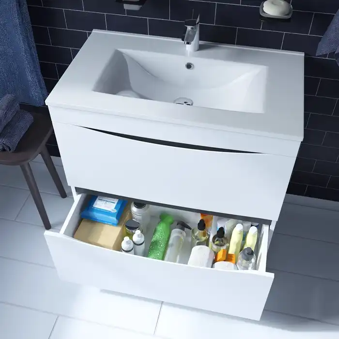 Долгожданное пополнение одной из самых популярных коллекций мебели IDDIS® – тумба Cloud с плоским умывальником. Сочетание строгих геометрических форм умывальника с плавными линиями интегрированных ручек делает дизайн мебели Cloud современным и востребованным. Контрастные ножки выгодно подчеркивают белоснежный фрезерованный фасад изделия. Напольная тумба Cloud – невероятно удобное решение для тех, кому нужна модель с увеличенной вместительностью для хранения габаритных предметов: больших пакетов со стиральным порошком, емкостей с бытовой химией и др. • Входящий в комплект умывальник (арт. 0138000i28) из качественного фарфора отличается высокой прочностью и простотой в уходе – он не задерживает загрязнения и неприятные запахи, надолго сохраняя первозданную белизну. • Два выдвижных ящика закрываются плавно и бесшумно благодаря высококачественным скрытым направляющим с доводчиками немецкого производства. • Фурнитура мебели IDDIS® рассчитана на 30 тысяч открываний, что составляет более 10 лет исправной работы. •