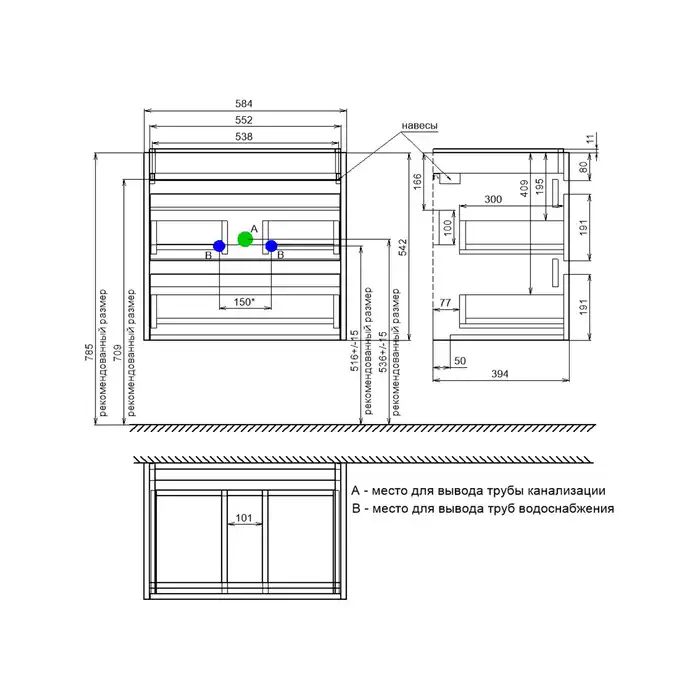 Тумба с умывальником, подвесная, 60 см, белый, Zodiac X, IDDIS, ZDX60W0i95K. Раковина в комплекте.