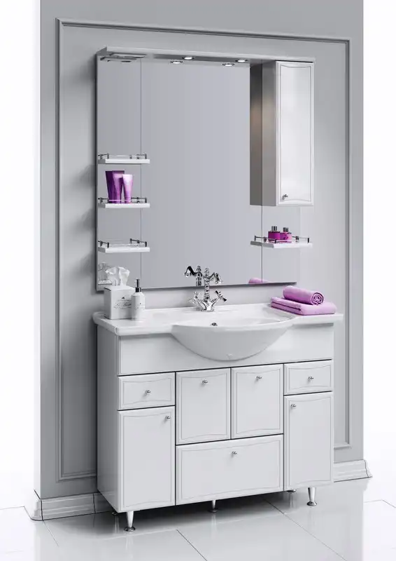 Напольная тумба Aqwella Barcelona BА0110К с тремя ящиками, тремя дверцами и бельевой корзиной, с умывальником Стиль 1050