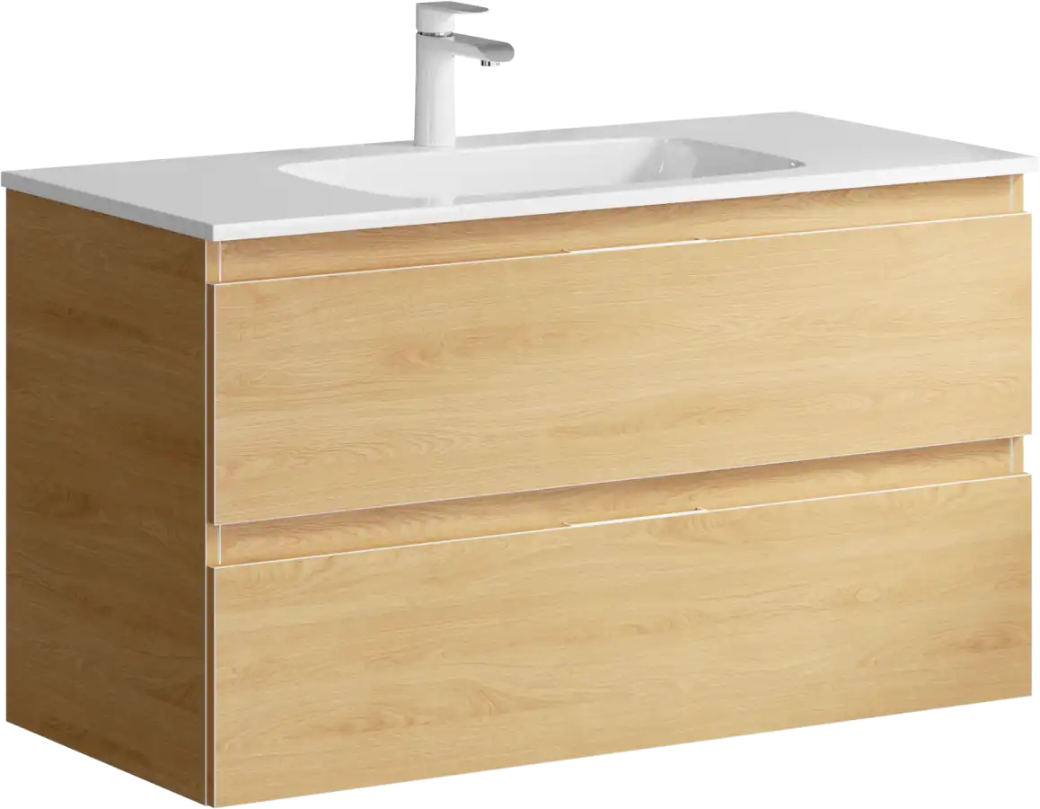 Подвесная тумба Aqwella 5 Stars Accent ACC0110DZ с двумя ящиками в цвете дуб золотой с умывальником из литьевого мрамора Malaga 1000