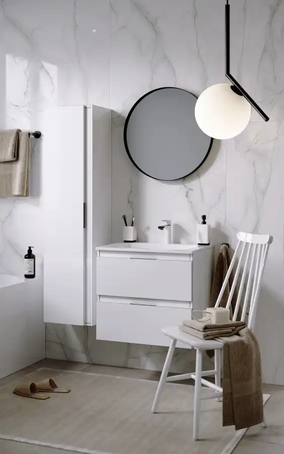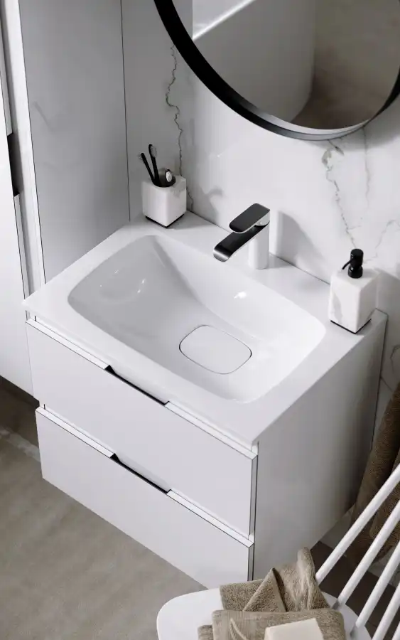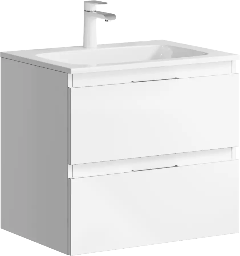 Подвесная тумба Aqwella 5 Stars Accent ACC0106W с двумя ящиками в белом цвете с умывальником из литьевого мрамора Malaga 600