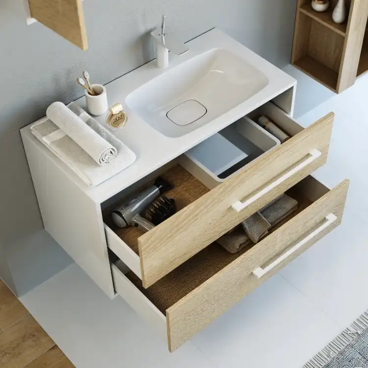 Подвесная правая тумба Aqwella 5 Stars Miami Mai.01.09/R с двумя ящиками с умывальником из литьевого мрамора. Malaga 900R