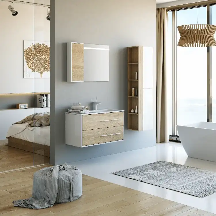 Тумба с раковиной подвесная Aqwella 5 Stars Miami 90 см, Mai.01.09/R, цвет Дуб сонома