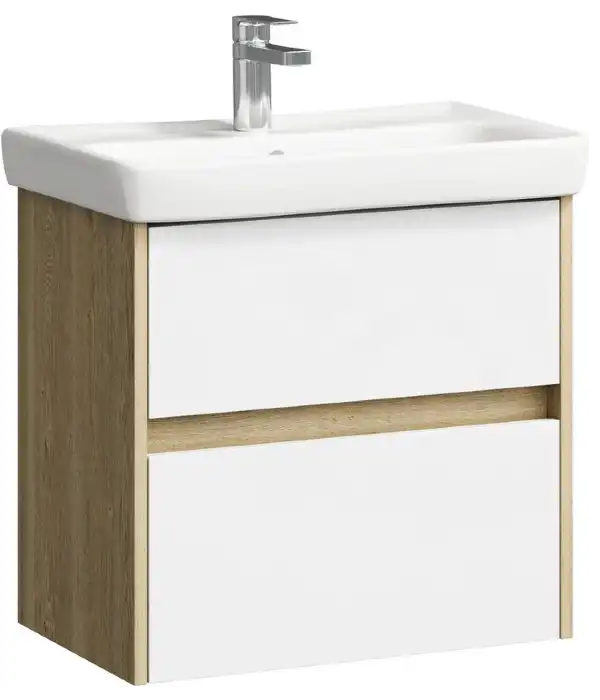 Подвесная тумба Aqwella City CI0106DB в цвете дуб балтийский с двумя ящиками с умывальником MODUO SLIM 60