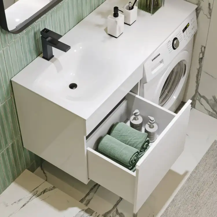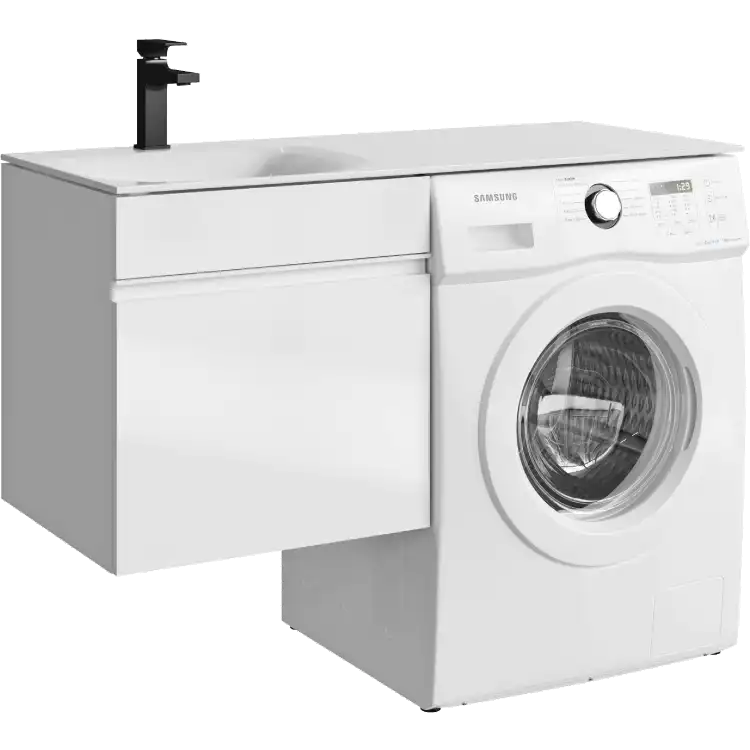 Подвесная тумба Aqwella Duet DU01051L под стиральную машину с одним ящиком 115 см, цвет белый с умывальником Forma 115 левая