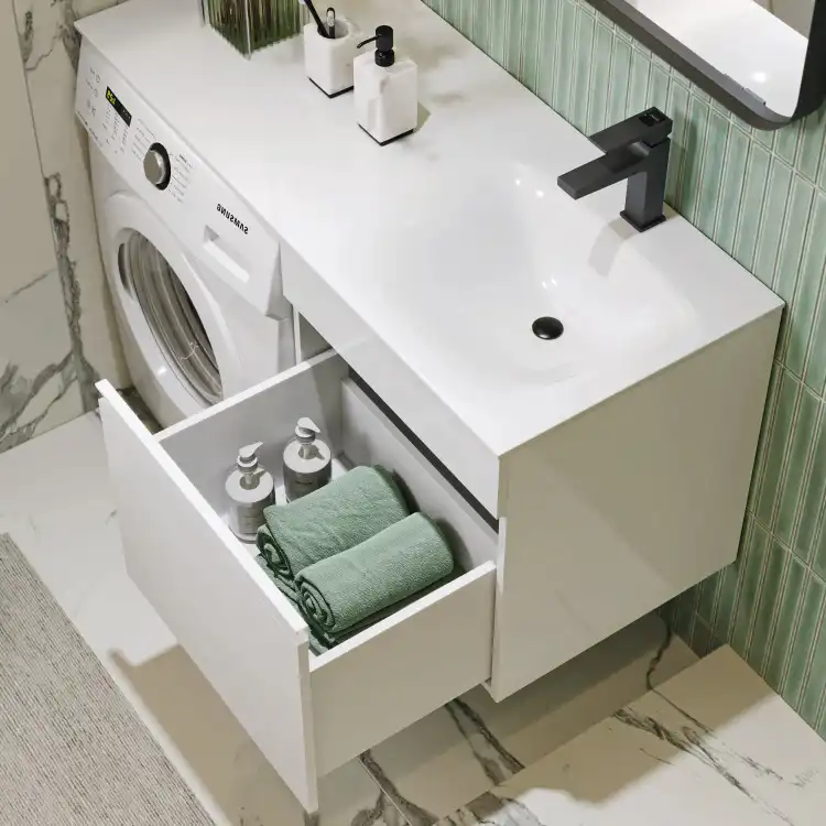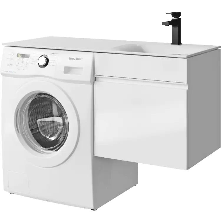 Подвесная тумба Aqwella Duet DU01051R под стиральную машину с одним ящиком 115 см, цвет белый с умывальником Forma 115 правая