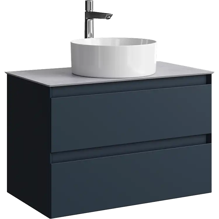 Подвесная тумба с двумя ящиками 81 см, цвет серый со столешницей серый камень и наставным умывальником Aqwella, GE01082GRM+STG814X476GS