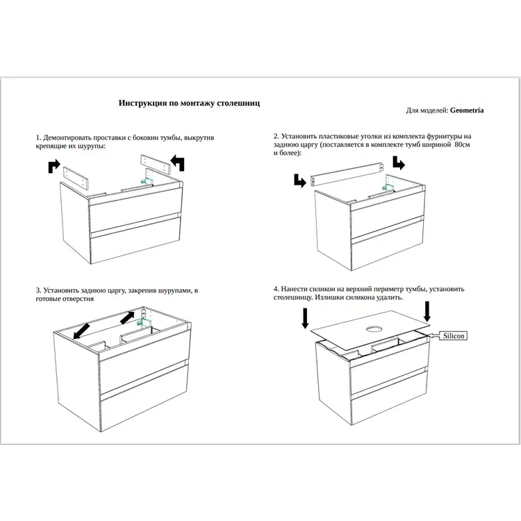 Тумба с раковиной подвесная Aqwella Geometria 80 GE01082MD+STG814X476MW, со столешницей мрамор белый, цвет морская дюна