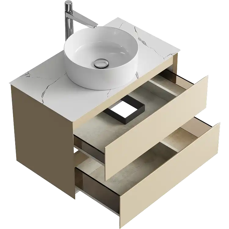 Подвесная тумба с двумя ящиками 81 см, цвет морская дюна со столешницей мрамор белый и наставным умывальником Aqwella, GE01082MD+STG814X476MW