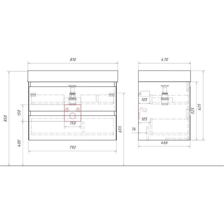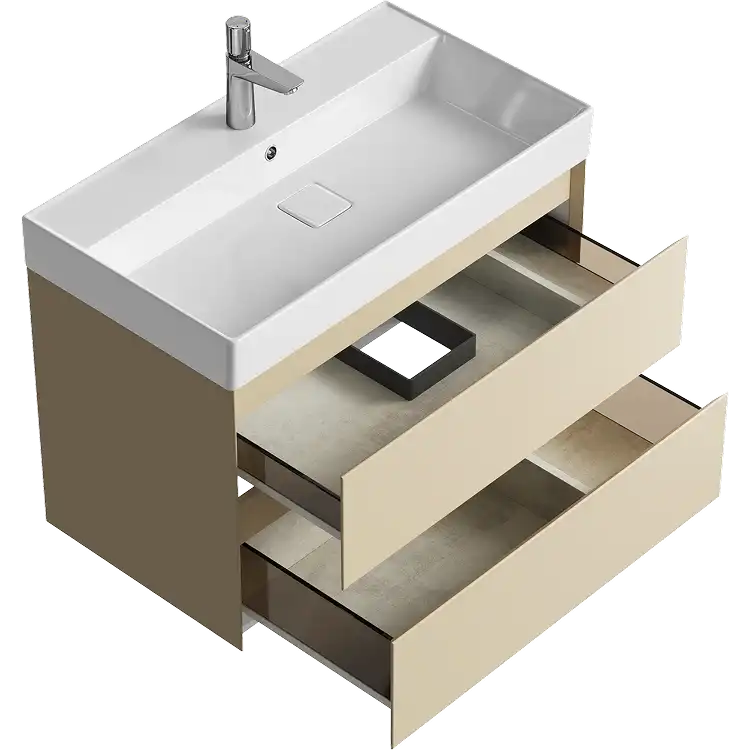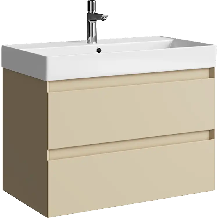 Подвесная тумба с двумя ящиками 81 см, цвет морская дюна с умывальником Aqwella, GE01082MD