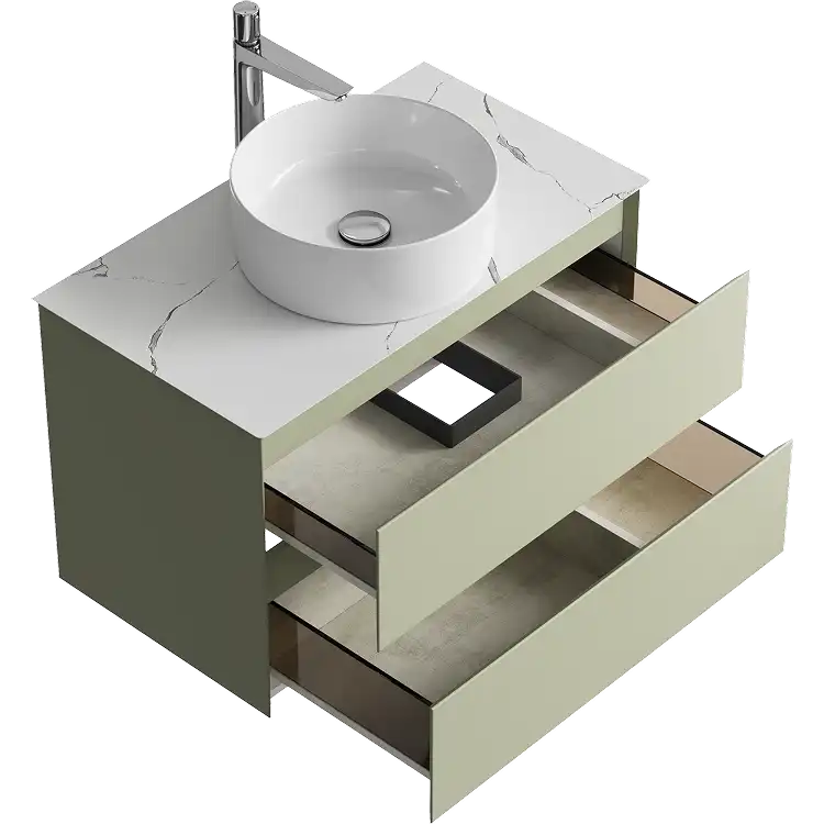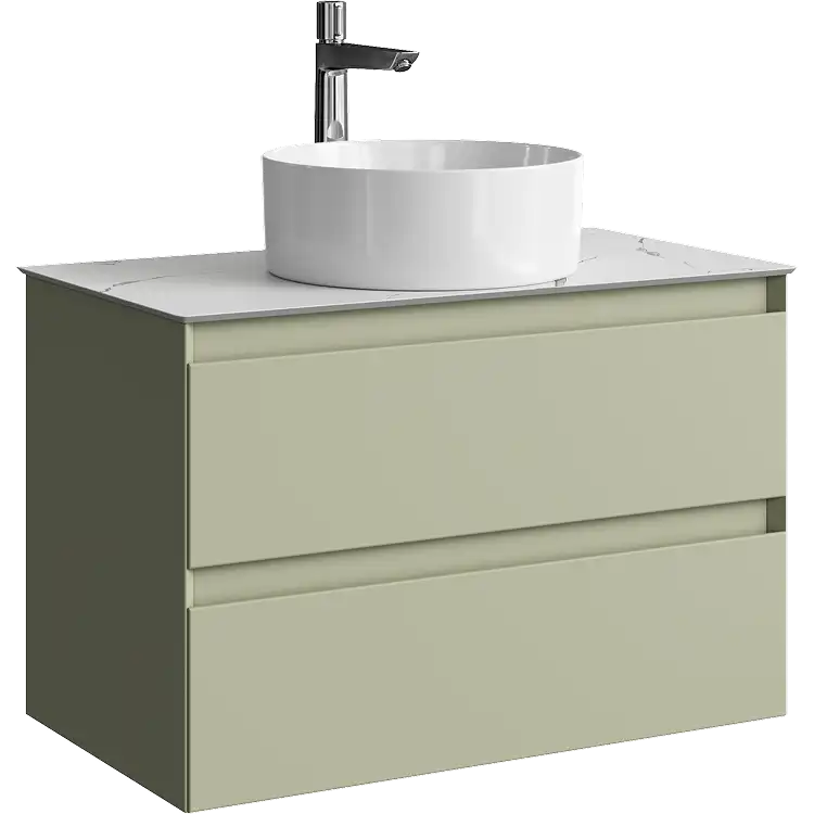 Подвесная тумба с двумя ящиками 81 см, цвет зеленый шалфей со столешницей мрамор белый и наставным умывальником Aqwella, GE01082SH+STG814X476MW